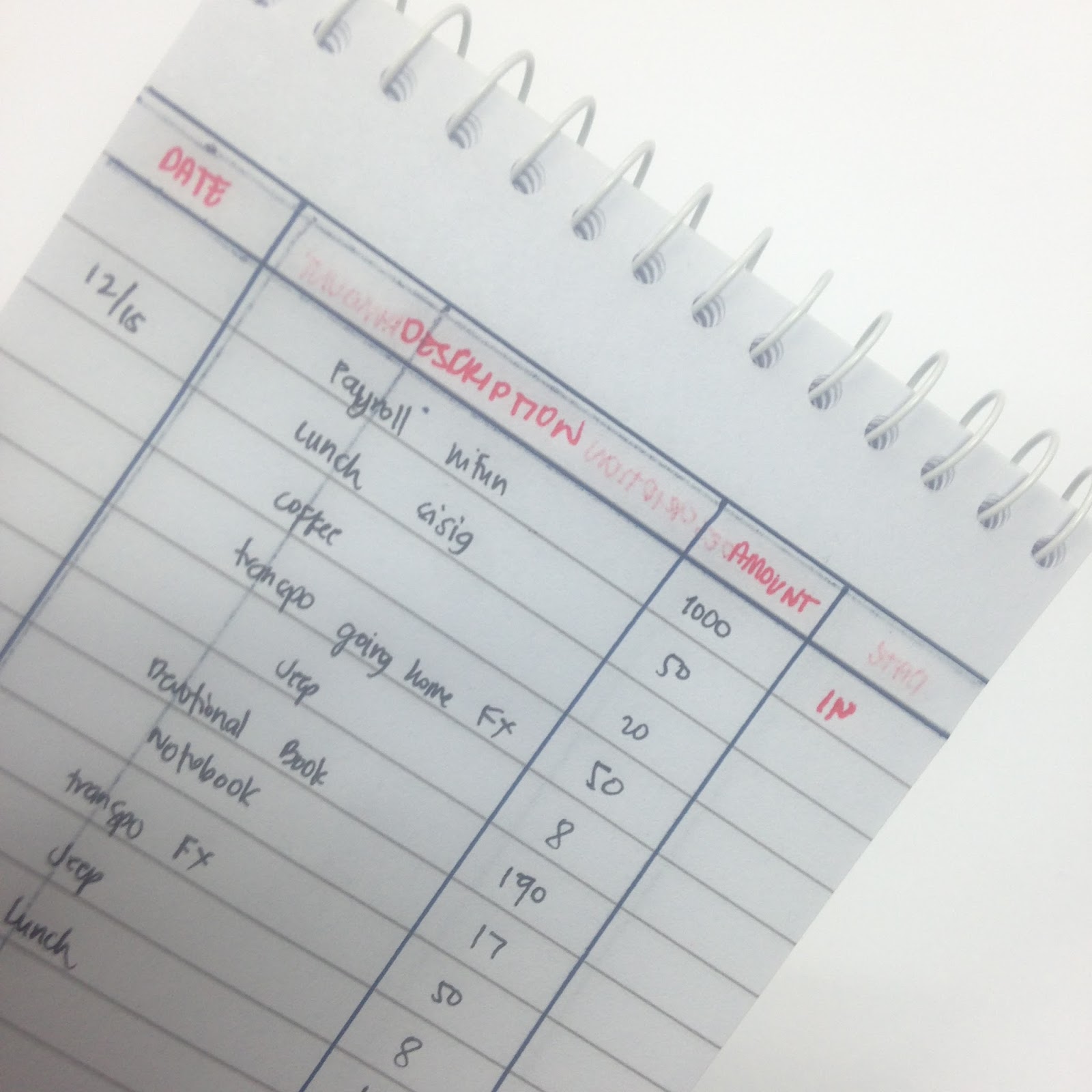 I also love that with this notebook I can remember the items I have bought for myself. Whenever I spend too much for an item I can easily remind myself to cut back and try to live lower than the money “in”. My goal is to live with just 1,000pesos per work week budget! ”