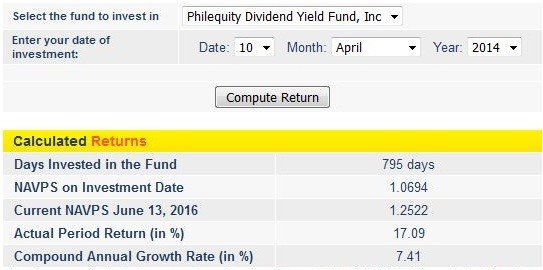 We’ve had our Philequity Dividend Yield Fund Inc account for a little over 2 years now and it had his high time during the first year. The second year was a bit of a downhill, but all stocks were bleeding during the second half of 2015. But we’ve made it a habit to top-up monthly, so it didn’t really bother us if the stock market was high or low.